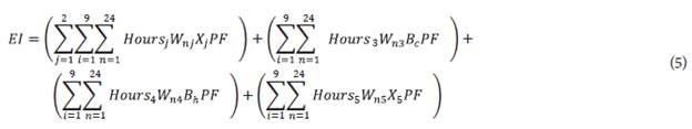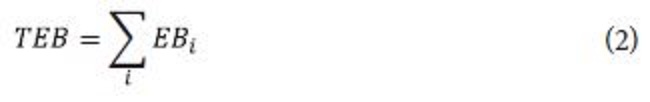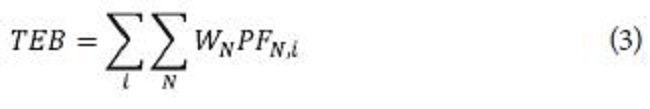 Where TEB = Total environmental load for a process (tons) and EBi = Environmental load for the category i (tons). Replacing EBi in (2), the equation for obtaining the total load for a process is obtained by (3):