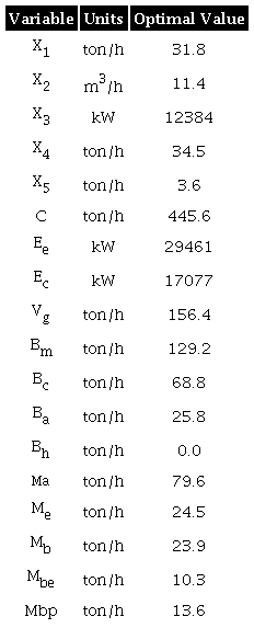 Xj = Quantity of product j to be produced (i = 1 in ton /h, i = 2 ethanol in m3/h, i = 3 in kW, i = 4 in ton/h, i = 5 in ton/h)