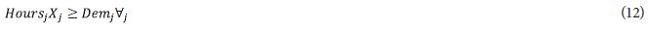 HourSj = Available hours for each month for the product j.