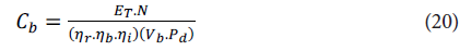 La potencia del generador fotovoltaico se obtiene con un consumo de 3.77 kWh/día y 1.58 kWh/día y con un rendimiento global para la instalación solar de 0.59 y 0.69 para el refrigerador convencional y el refrigerador propuesto, respectivamente, para una irradiación diaria de 3820 Wh/ m2, durante el mes más desfavorable en Cali, Colombia, un factor de uso y sombra de 1, un factor de conversión de 1000 W/m2 y aplicando la ecuación (17).