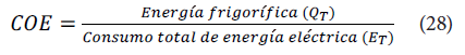 COE: Coeficiente de energía. Relaciona la energía térmica de refrigeración y el consumo total de electricidad [33].