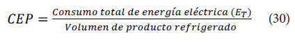 CEP: Consumo específico del producto. Determina la energía eléctrica empleada por cada litro de producto refrigerad.