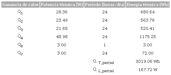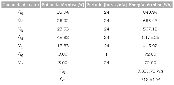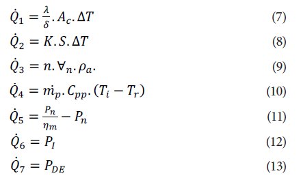Desde la ecuación (7) hasta la (13) se muestra cómo calcular cada ganancia de calor.