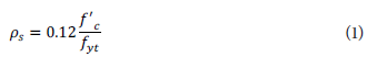 La norma NSR-10 en la sección C.21.6.4.4 establece las cantidades para disponer el refuerzo transversal en los incisos (a) y (b) (a menos que en 21.6.5 se exija mayor cantidad de refuerzo), en el inciso (a) establece la cantidad de refuerzo calculada mediante la ecuación (1) (ecuación C.21-6 NSR-10) en virtud de la cuantía volumétrica de refuerzo en espiral o de estribos cerrados de confinamiento circulares ps: