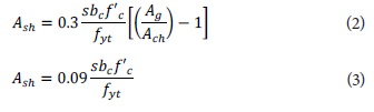 El inciso (b) de C.21.6.4.4 determina que la cantidad de refuerzo transversal se calcula de acuerdo con el área total del a sección transversal del refuerzo de estribos cerrados d e confinamiento Ash y no debe ser menor que la requerida por las ecuaciones (2) y (3) (ecuaciones C.21-7 y C.21-8 NSR-10):