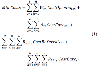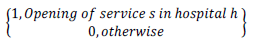 ■ CostOpeningsh= Opening cost of the standard service s ∈ S in the hospital h ∈ H (including implementation and purchase of biomedical equipment).