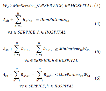 ■ MinPatientsh= Minimum monthly capacity of patients to be treated with service type s ∈ S in hospital h ∈ H.