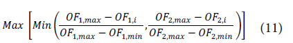 Finally, to determine the optimal solution, the MinMax methodology is applied, which seeks to find an equidistant point between all the Pareto points and obeys Eq. (11), where each OF is shown in Table 1[50].