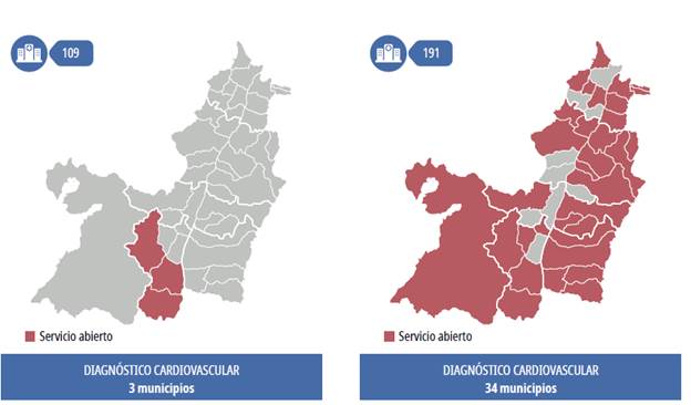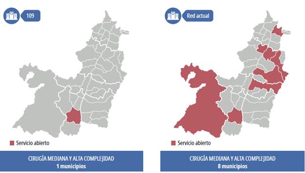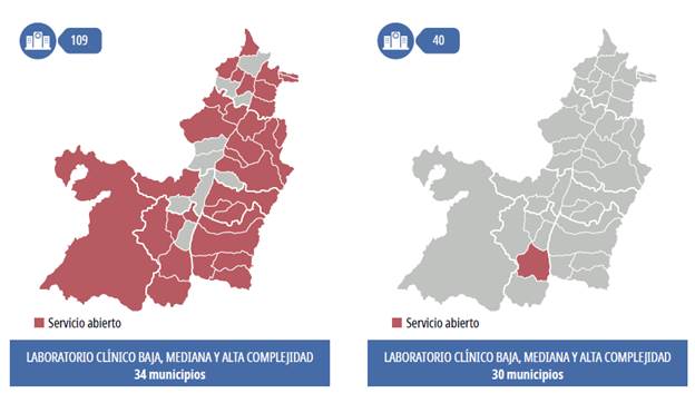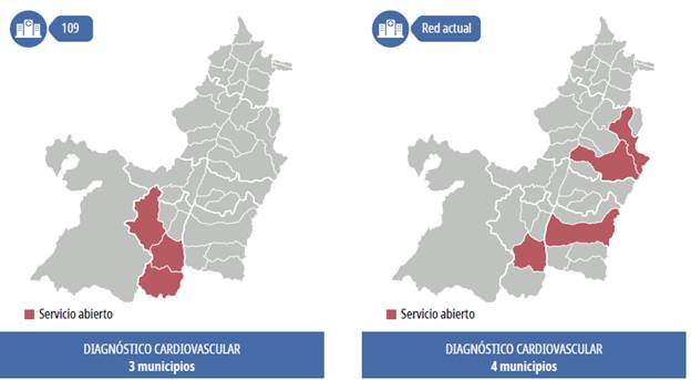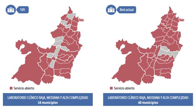 The coverage is broad in the case of low-, medium- and high-complexity clinical laboratory services, where there are demand and low costs compared to other investments. It is similar to the current network, as shown in Figure 10.