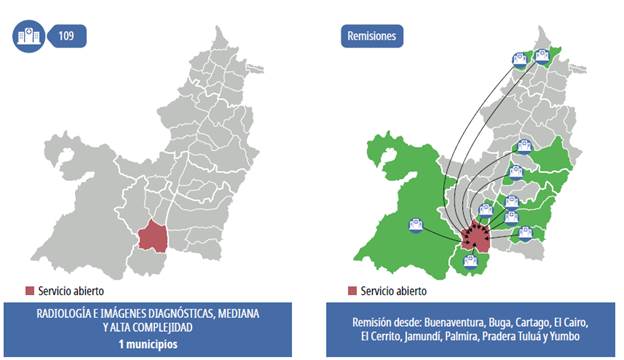 ■ The network of HS providers in Valle del Cauca comprises geographical areas. It has second and third-level hospitals as the central nodes in the intermediate cities of the department. The model seeks to maximize installed capacity and access to technology and qualified personnel and to distribute services of greater complexity to medium towns.