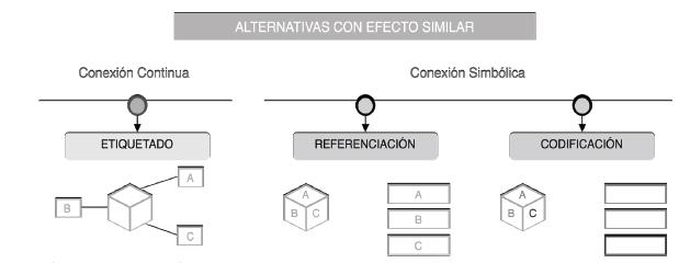 Sin embargo, considerando que en el diseño de la interfaz no siempre es posible aplicar estas técnicas, también se identificaron otras que aprovechan la conexión continua y la conexión simbólica, como mecanismo para fomentar la asociación de contenido: