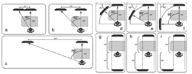 Proximidad física: la proximidad física entre fuentes de información se establece como la cercanía en términos de distancia [57] (figura 7). Medida en grados angulares [57], se identificó un impacto negativo en el tiempo de tarea y su precisión para separaciones superiores a 35° [58], con un comportamiento lineal del efecto [58]. Se estableció un ángulo de 27º como el óptimo de separación horizontal entre fuentes de información [59]. En los estudios revisados se evaluó la separación horizontal [44], pero no se identificó alguna evaluación para separación vertical. En dispositivos HMD, el tiempo y carga mental es menor [58], [60]. En tareas de alta frecuencia siempre fue preferida la distancia más corta [61].