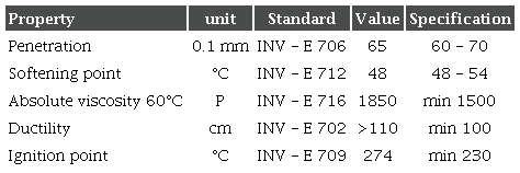 Firstly, the performance of the additives will be evaluated on the asphalt binder scale. Conse quently, the additives were mixed with the asphalt binder using a rotational mixer at 300 revolutions for 10 minutes. The modifiers were added in 2.00 and 3.00% per cent by weight of asphalt mixture. In this phase, the mixing temperature was approxi mately 155°C. The rheological properties of the binder were evaluated through the ductility test (INV - E - 702 - 07), where a standard-size brique tte of asphalt binder stretches to its failure brea king point. The penetration index was also defined to measure the consistency of the asphalt binder following the INV - E - 702 - 07 standard norma tive. The ring ball apparatus was also employed to determine the softening point of the bitumen (INV - E - 702 - 07). The flashpoint was calculated through INV - E - 709 - 07. Finally, the viscosity test was carried out to determine the mixing and compaction temperature of the asphalt mixture according to INV - E - 715 - 07.