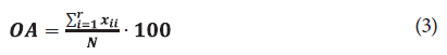 donde xii es el número de muestras clasificadas correctamente, N es el total de muestras extraídas y r es el número total de clases.