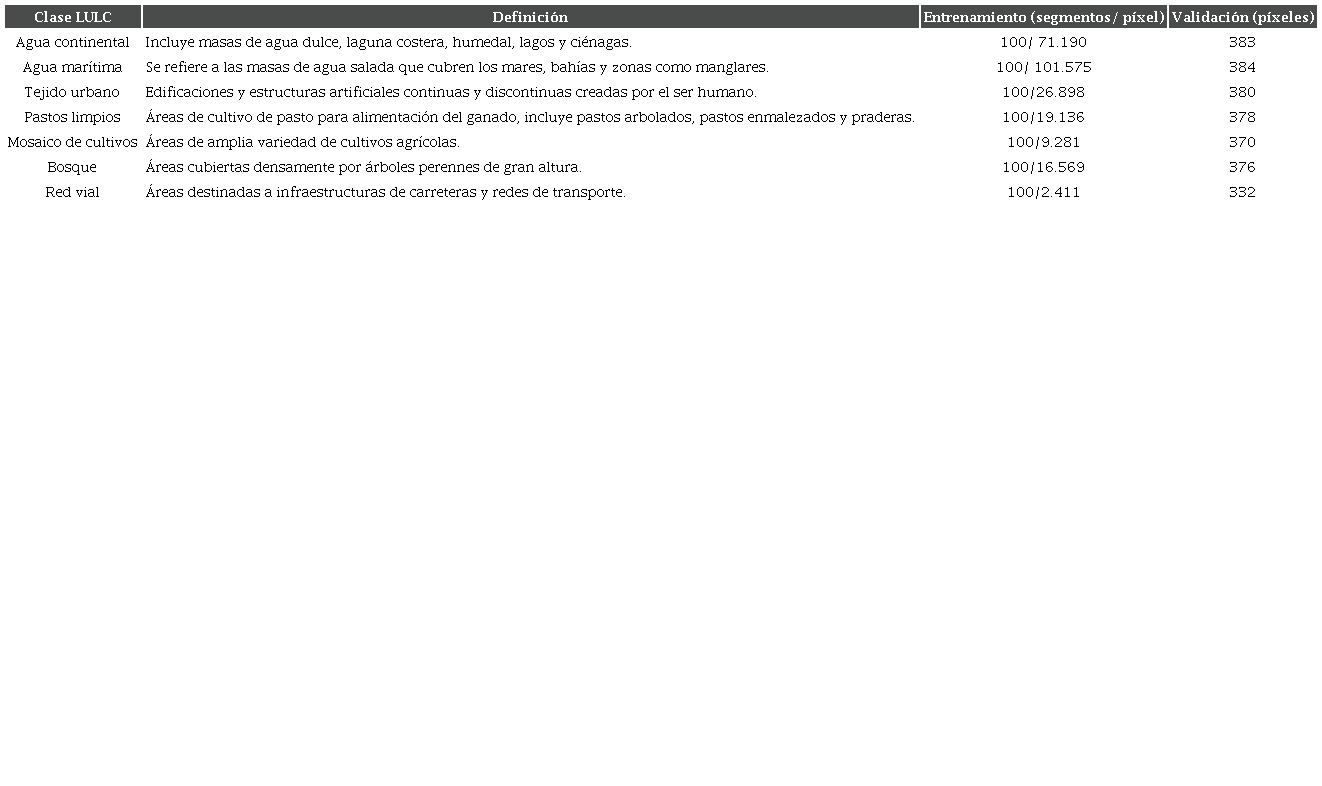 Para lograr una buena precisión en la clasifi cación LULC, es esencial contar con conjuntos de datos de entrenamiento suficientemente amplios.