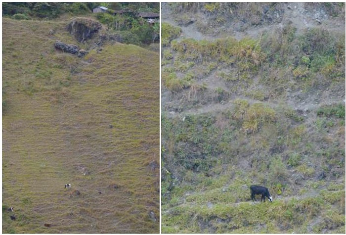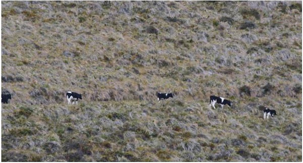 Esta situación afecta en forma crítica al menos una de las dos grandes cuencas hidrográficas del municipio, en los territorios que forman parte de la estructura ecológica de soporte mínima (EESM) como las áreas de recarga hídrica. Una buena parte de la zona de recarga de las microcuencas de los ríos Panchindo y Barranco corresponden a áreas protegidas por el Santuario de Flora y Fauna Galeras (SFFG), donde se percibe un control de la deforestación, pero a pesar de ello se encontraron evidencias de ganadería aún en los herbazales nativos y páramos más cercanos al cráter del volcán (figuras 2 y 3). La zona de recarga hídrica en la cuenca alta del río Pasto presenta una situación crítica, ya que solo se observan coberturas de pastizales cultivados destinados para forrajeo de ganado, donde se ha sustituido casi en su totalidad la cobertura boscosa o arbustiva que pueda regular los servicios ecosistémicos (SE) de recarga y regulación hídrica.