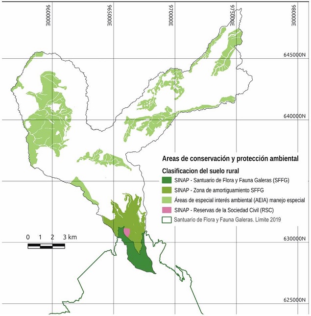 Se incluyen también las de especial interés ambiental (AEIA) conformadas por las zonas donde se preservan muestras de los ecosistemas originales (bosques nativos), terrenos de importancia estratégica municipal y de soporte que permiten la preservación de los ecosistemas, su restauración y aprovechamiento sustentable de la biodiversidad y los SE, definidas además con criterios geomorfológicos como las altas pendientes, las funciones de regulación superficial y profunda del recurso hídrico y zonas de riesgo.
