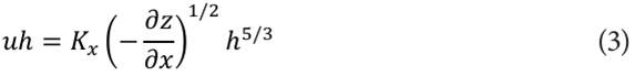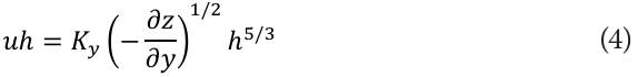 Donde Kx y Ky hacen referencia a los coeficientes de rugosidad de Strickler, equivalentes a la inversa del coeficiente n de Manning calculado para la cuenca. La solución de estas ecuaciones se realiza en el software MIKE SHE a partir del método de diferencias finitas.