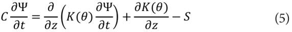 La infiltración del agua se determinó en el componente de flujo no saturado, según la ecuación (5) de Richards como se expresa a continuación 7: