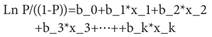 Donde P es la probabilidad de que la variable dependiente sea igual a 1, mientras que las variables explicativas se definen con x1, x2, x3,...xk, y b corresponde a los coeficientes de regresión 23. El estadístico que se utilizó para evaluar el modelo de regresión es el ROC (Relative Operating Charasteric). Todo el proceso se realizó con el módulo Logisticreg del programa Idrisi Selva.