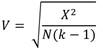 Donde X2 es Chi cuadrado derivado del test de Pearson; N es el número total de observaciones, y k es el número de filas o columnas (tomando el menor de ellas).