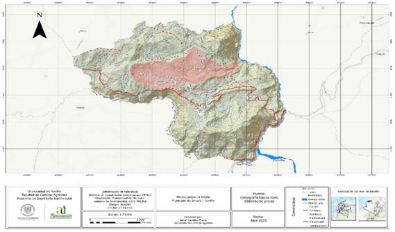 La presente investigación se realizó en el municipio de Imués, microcuenca La Rasta (figura 1), que, por sus condiciones geográficas y edafoclimáticas, son representativos en la zona andina nariñense y se caracteriza por tener una extensión de 7.2 km y un área total de 1135 hectáreas, correspondiente al 13,90 % del territorio.