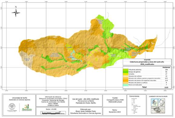 Anexo 3. Mapa de las coberturas del suelo en el año 2050, modificado, de la microcuenca La Rasta, municipio de Imués, Nariño