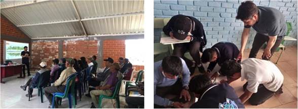 Para corroborar las variables explicativas desde una dinámica social participativa y con base en el contexto territorial, se desarrollaron las Escuelas de campo, adaptadas para asociaciones y centros educativos, cuyos objetivos fueron la identificación del conocimiento empírico que tienen acerca de su territorio, teniendo en cuenta su percepción a través del tiempo y su afectación en el futuro de los territorios, propendiendo por la conservación y preservación de los ecosistemas estratégicos de la zona (figura 3).