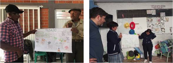 Los talleres tuvieron jornadas en las cuales los estudiantes, mediante dibujos y grupos de trabajo, se situaron en tres escenarios espacio-temporales, el pasado, el presente y el futuro; para cada caso, cada grupo identificó, de acuerdo con su conocimiento o relatos de sus padres o abuelos, cómo percibía su territorio.