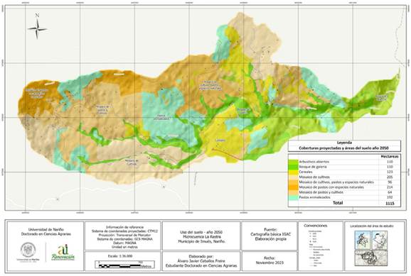 Anexo 1. Mapa de las coberturas del suelo en el año 2050, de la microcuenca La Rasta, municipio de Imués, Nariño