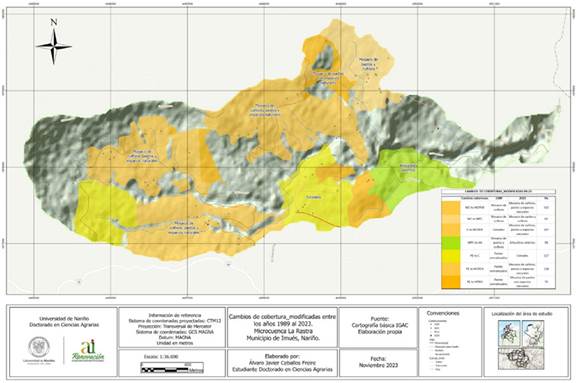 Anexo 2. Mapa de cambios de la cobertura entre los años 1989-2023, modificado, de la microcuenca La Rasta, municipio de Imués, Nariño