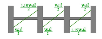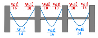 Las expresiones indicadas por el código ACI 318-19 para el cálculo de los momentos y cortantes últimos de losas aligeradas en una dirección permiten obtener valoraciones aproximadas que cumplen con las demandas de diseño. Las fórmulas se describen en las tablas 6.5.2 y 6.5.4 establecidas en el reglamento. En los siguientes diagramas se indican cómo se distribuyen estas expresiones, según sus condiciones de apoyo, para un sistema de losa compuesto por tres vanos continuos, el cual fue el caso más desfavorable que se presentó en el estudio.