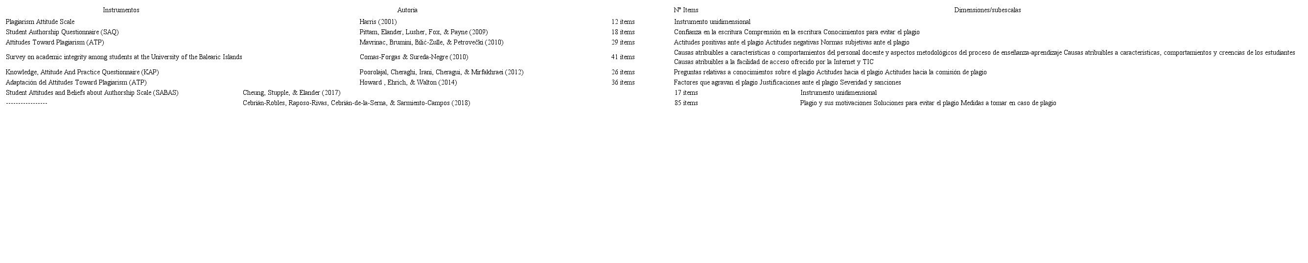La multidimensionalidad y la multicausalidad del tema se refleja en la atención que se presta a los factores tanto de tipo contextual como individual en varias investigaciones en las que se han diseñado, aplicado y estandarizando instrumentos de medida centrados en el plagio (tabla 1).