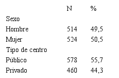 La muestra estuvo compuesta por 1038 escolares de tercer ciclo de Educación Primaria de 9 centros educativos públicos y concertados de la capital de Granada (España), todos ellos seleccionados mediante muestreo aleatorio por conglomerados considerando la tipología de los centros educativos. La distribución según el sexo de los participantes fue del 49,5% (n=514) para los varones y del 50,5% (n=524) para las niñas. La edad estuvo comprendida entre los 10 y 13 años de edad (M = 11,33; DT = 1,27).