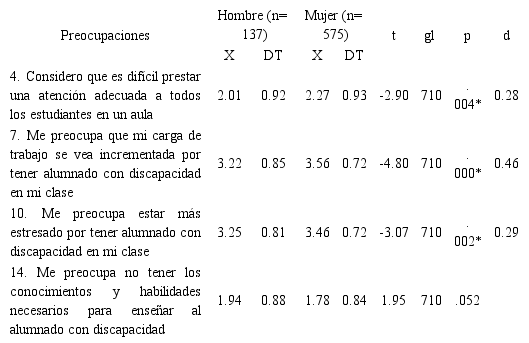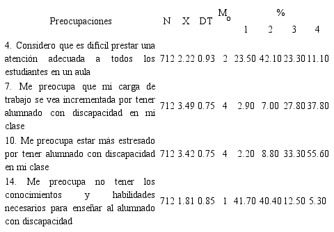 Resultados sobre Preocupaciones y repercusiones de la inclusión