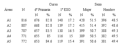 - (*) Se corresponde con el número de estudiantes que han respondido a todos los ítems de las pruebas de conocimiento-capacidad y de las escalas de actitudes de las cinco áreas que conforman la prueba completa (ECODIES).