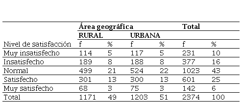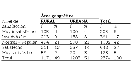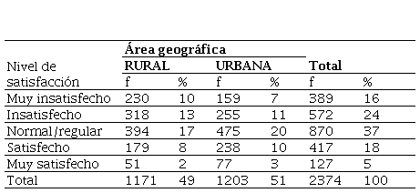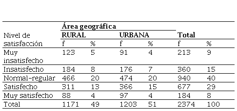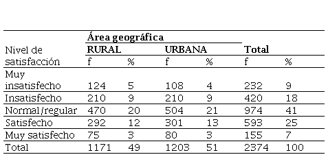 Finalmente, la dimensión relacionada al proceso de enseñanza-aprendizaje, genera una satisfacción normal/regular en los estudiantes en un 43%, con tendencia a un nivel satisfactorio (25%) (Tabla 10). En este aspecto no existe mucha diferencia en la satisfacción percibida por los estudiantes de zonas rurales y urbanas, demostrando que el proceso de enseñanza-aprendizaje que se promueve a través de la educación virtual está orientado a estudiantes de diversas ubicaciones geográficas.