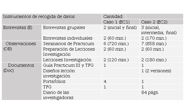 Para reflejar la naturaleza de los datos recogidos, es conveniente tener en consideración las diferentes fuentes, fechas y tipología de datos que se han analizado y que dan forma, contenido, estructura y profundidad a los hallazgos que se comparten en este estudio (Tabla 1). A continuación, se describen y detallan cada uno de los instrumentos utilizados para recoger información relevante de los dos estudios de casos desarrollados: