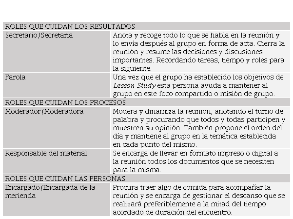 Obviamente la calidad del proceso grupal dependerá del cuidado de cada una de las tres funciones, algo que en ambas experiencias las tutoras protegen a través de la asignación de roles grupales para los tiempos de trabajo en grupo. Basándose en la técnica de De Bono (2019), la Tabla 4 recoge los roles que se presentan a los grupos como elementos a tener en cuenta en el proceso relacional del trabajo grupal, así como su relación con las funciones principales de los procesos grupales anteriormente planteadas: