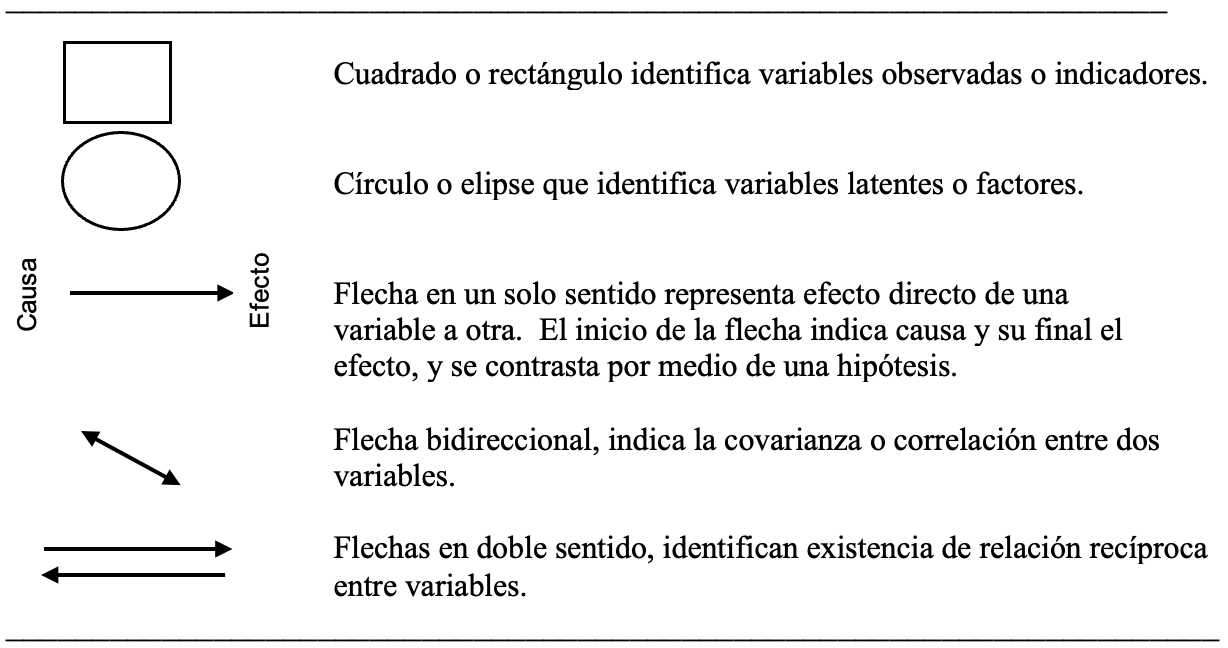 Las ecuaciones estructurales se descomponen de forma directa o indirecta, tal como se construyen los modelos de regresión lineal con los datos observados; se formaliza un modelo que recoge las diferentes cadenas causales establecidas como hipótesis para explicar los conocimientos, aptitudes y actitudes desarrollados en el aprendizaje. Los efectos se relacionan con las variables observadas y latentes, para evaluar el grado de asociación entre ellas, así como la existencia de dependencia e independencia entre ellas (Wang & Rhemtulla, 2021).