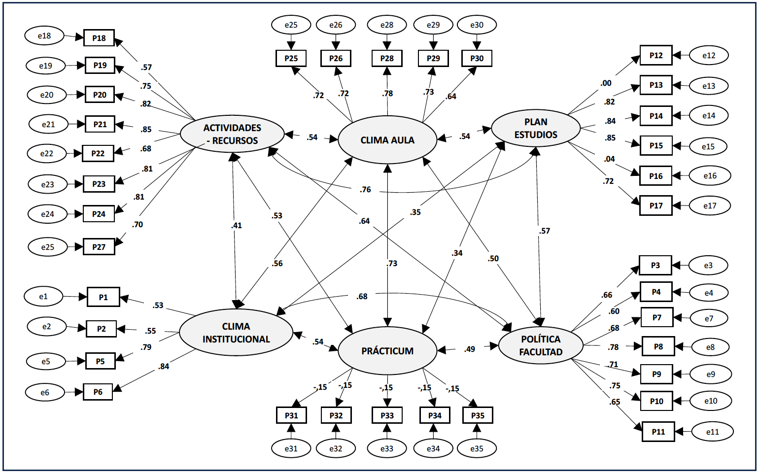 Cabe destacar, pues, la gran adaptación que tiene el modelo teórico a la definición realizada a través del AFC en torno al modelo de ecuaciones estructurales (Fernández-Cruz et al., 2018). De hecho, como indicamos con anterioridad (Tejada et al., 2025a), las dimensiones, variables e indicadores establecidos se han ajustado con bastante proximidad al modelo teórico analizado. Con ello se puede concluir sobre la consistencia y robustez de los factores que configuraron la estructura inicial de ítems, dimensiones y escalas que conforman el instrumento, fundamentada en dichos referentes teóricos.