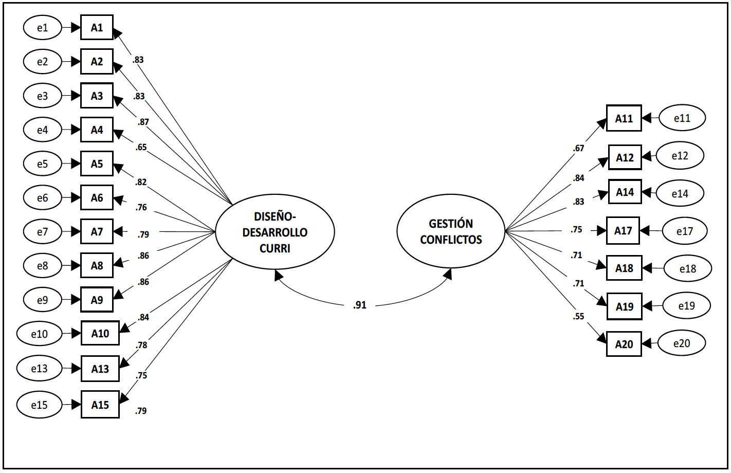 Para el AFC se ha utilizado el Método de Ecuaciones estructurales y se procede a la estimación de sus parámetros por el procedimiento de máxima verosimilitud, especificando los índices de ajuste de los modelos inicial y final.