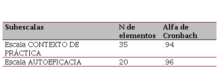 Este marco de referencia ha posibilitado la estructuración del cuestionario de autoevaluación de acuerdo con las diferentes dimensiones e indicadores apuntados, a la vez que, consecuentemente, articular las diferentes escalas (CONTEXTO DE PRÁCTICA de atención DSG y AUTOEFICACIA para la atención DSG), dotándole de coherencia interna desde la conceptualización teórica operada (Tejada et al., 2025a).