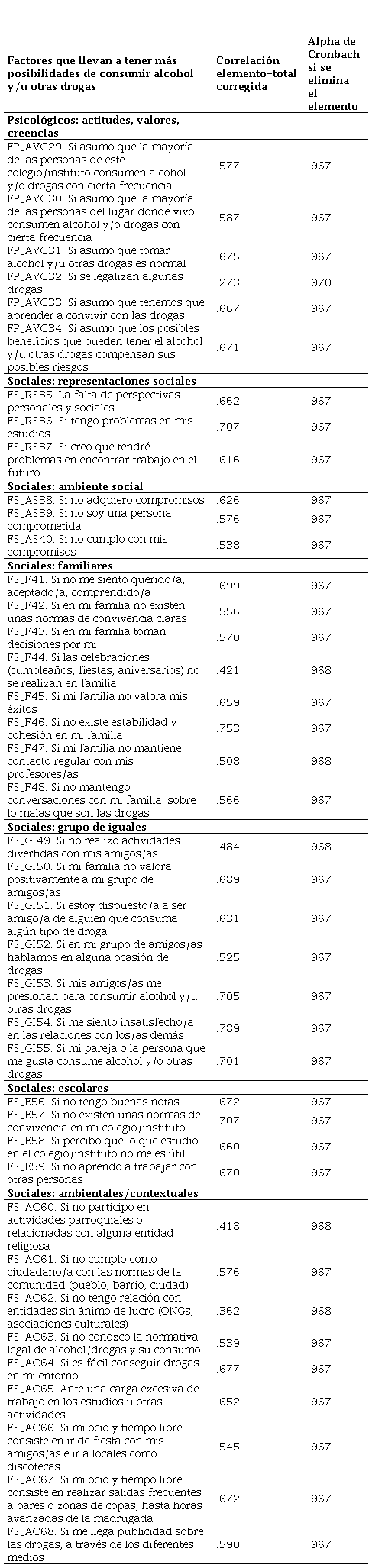 Diseño y validación del cuestionario de determinación de factores de riesgo y protección asociados al consumo de alcohol y otras drogas en adolescentes de ESO