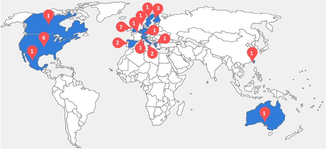 Several publications have been found in the literature which measures the concentration of airborne NMs in urban and rural environments. In Figure 1 are exposed the locations where the studies compiled were carried out
