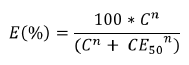 CE50 = concentración estimada que produce un efecto del 50% n = pendiente de la región central de la curva sigmoide