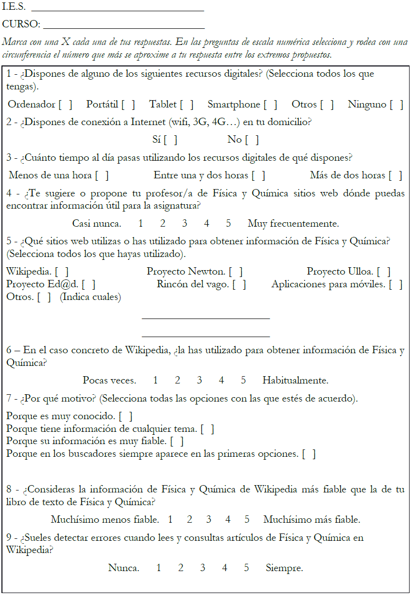 Palabras clave: enseñanza de las ciencias, Física y Química, competencia digital, información online, Wikipedia.