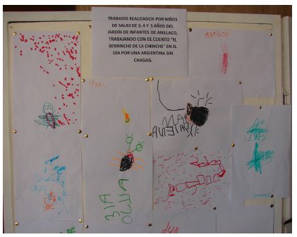 En el Jardín Carlos Menem (H) de la localidad de Anillaco se pudo constatar que los alumnos que habían participado en la actividad el año anterior (2013) habían interiorizado los conocimientos impartidos y recordaban los principales conceptos trabajados. Asimismo las maestras que previamente habían participado en la actividad, expresaron sentirse más capacitadas en la temática. Las familias de los alumnos mostraron un gran interés en la actividad, lo cual también se consideró un indicador positivo de la intervención realizada. Por otro lado, la solicitud de los directivos de repetir la actividad y ampliar el alcance de la misma a otras sedes fue considerada como un indicador de buena recepción por parte de la comunidad educativa. Tanto en los dibujos como en los debates fue posible constatar el aprendizaje significativo de contenidos conceptuales por los alumnos, los cuales lograron diferenciar vinchucas de otros insectos, así como los diferentes estadios de T. infestans. Por medio del juego, fue posible involucrar a los alumnos de solo 3 años como protagonistas en la vigilancia entomológica de su propio hogar lo que favoreció que los niños se sintieran interesados en aprender más sobre la enfermedad de Chagas y cómo prevenirla.