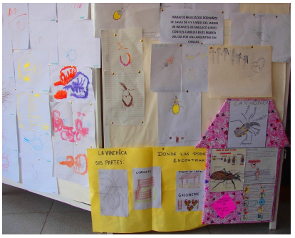 La actividad de cierre consistió en que cada alumno realizara un dibujo de lo aprendido y dichos trabajos fueron expuestos en el hall de entrada del Centro de Investigación Científica CRILAR. Algunos dibujos fueron realizados por los niños (Figura 3) y en otros casos la tarea fue realizada con colaboración de toda la familia (Figura 4).