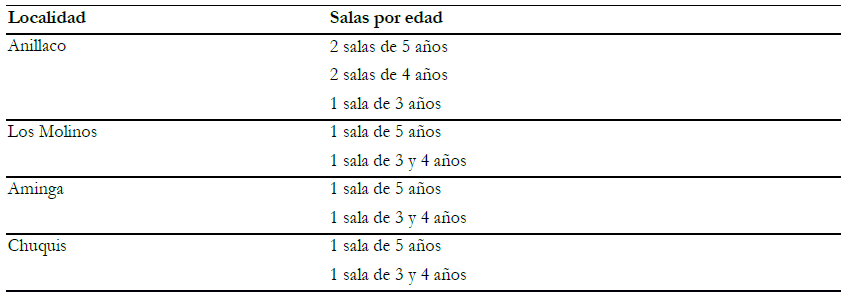 La experiencia se desarrolló en el mes de agosto durante dos años consecutivos (2013 y 2014) y se enmarcó en las actividades llevadas a cabo en la “Semana de la Argentina sin Chagas” por el Grupo de control de vectores de la enfermedad de Chagas del CRILAR- CONICET. Este grupo está compuesto por Biólogos y Docentes que investigan sobre insectos transmisores de enfermedades y que realizan actividades de transferencia de conocimientos a la comunidad por medio de la educación no formal. En conjunto a los directivos de los Jardines de Infantes del núcleo N° 5 del Departamento Castro Barros (La Rioja, Argentina) se propuso realizar actividades lúdicas y recreativas que acercaran conocimientos científicos y de promoción de salud a los alumnos. Se seleccionó al Dpto. Castro Barros debido a que forma parte de la zona endémica para Chagas y es frecuente observar vinchucas (insectos vectores de esta enfermedad) en los domicilios, a pesar que en esta zona, la transmisión parece estar interrumpida actualmente. Se involucró alumnos de nivel inicial de entre 3 y 5 años. En el primer año (2013), se trabajó únicamente con la sede de la localidad de Anillaco que contaba con la mayor matricula de la zona (75 alumnos). En 2014 se continuó la actividad con todas las sedes del Dpto. Castro Barros. En total se trabajó en las localidades: Anillaco, Los Molinos, Aminga y Chuquis. La distribución de alumnos por edad en cada una de estas sedes se detalla en la siguiente tabla (Tabla 1).